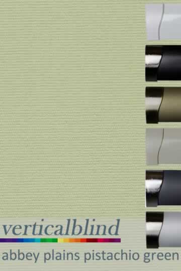 Complete Vertical Blind in Abbey Plains Pistachio Green fabric made to measure including all fixtures and fittings with a choice of rail finish, control and draw.