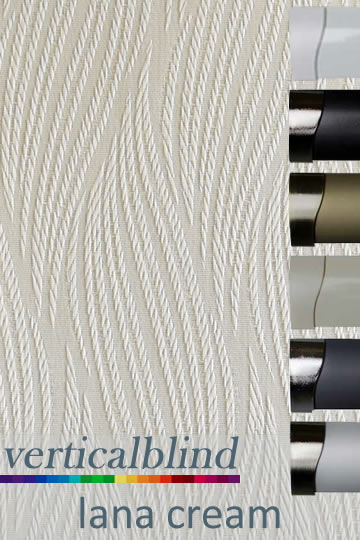 Complete Vertical Blind in Lana Cream fabric made to measure including all fixtures and fittings with a choice of rail finish, control and draw.